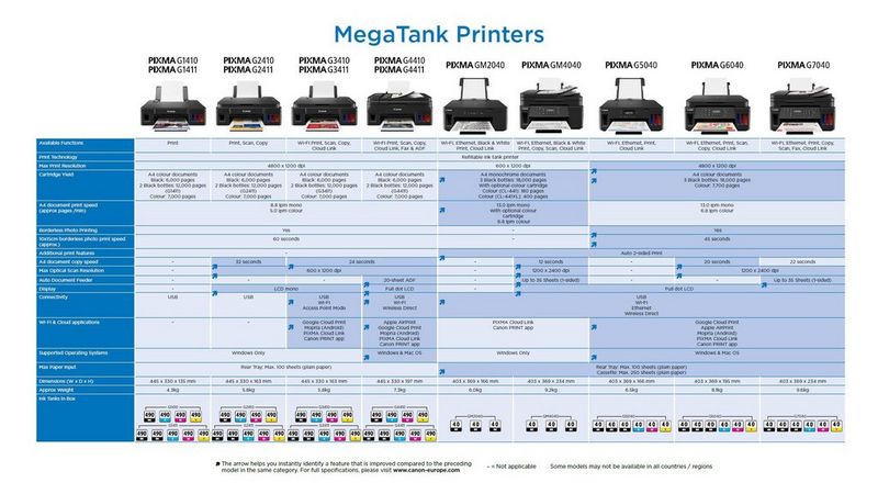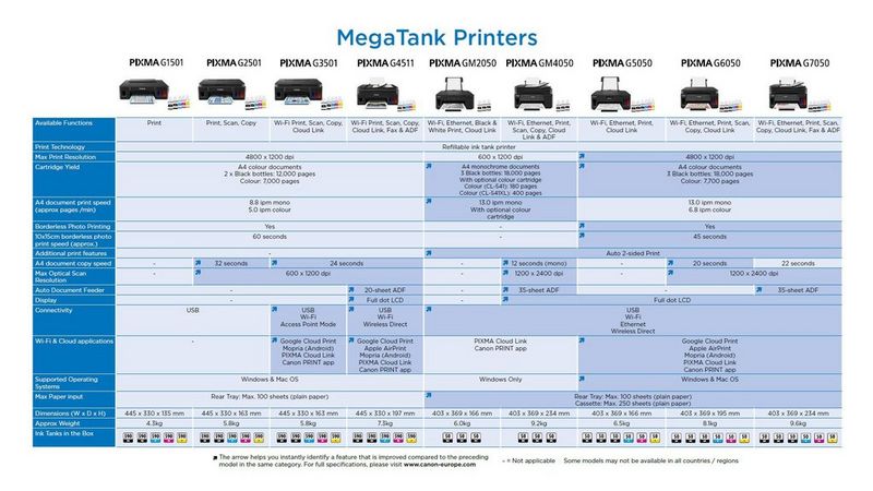 Canon Megatank Printers Comparison